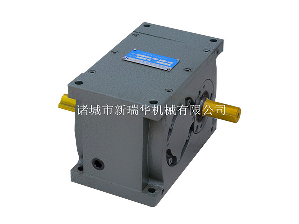 輸入軸上的板形凸輪與輸出軸分度輪上的從動(dòng)滾子平行嚙合的傳動(dòng)裝置。此分割器有平行共軛凸輪的結(jié)構(gòu)設(shè)計(jì)。適合供給節(jié)距較大的輸送帶傳動(dòng)或用于停留時(shí)間較長(zhǎng)的間歇分度。該分割器能實(shí)現(xiàn)小分度,大步距的輸出。特別適用于要求一個(gè)周期內(nèi)停歇次數(shù)較少的場(chǎng)合,如各種紙盒模切機(jī),果奶果凍灌裝成型機(jī)等。